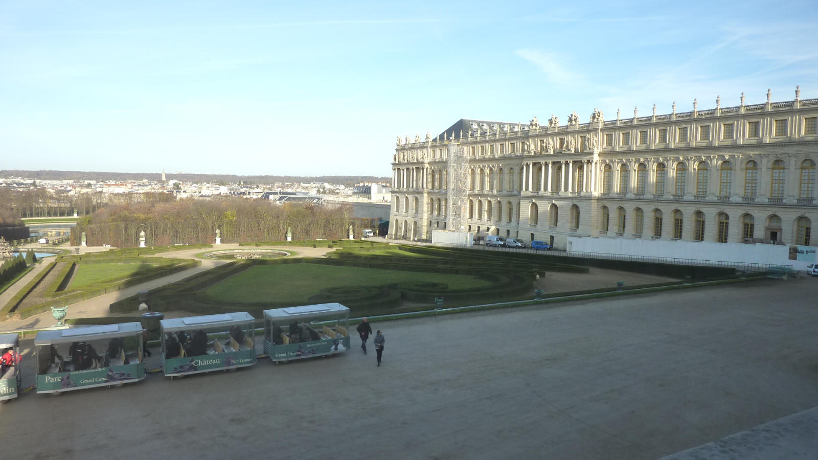 vue sur le parterre Nord et l'aile Nord du Château à partir du Salon d'Apollon le 30 novembre 2011