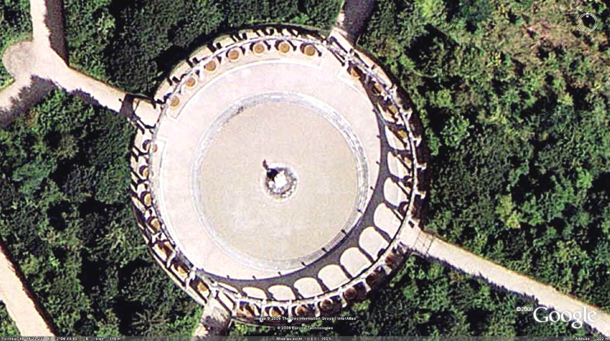 page précédente le péristyle de 32 m de diamètre composé de 32 colonnes de marbre..( Hardouin-Mansart - 1684) (copyright Google)