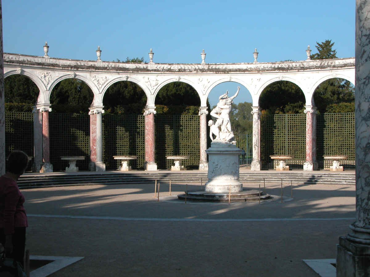 page précédente le péristyle de 32 m de diamètre composé de 32 colonnes de marbre...( Hardouin-Mansart - 1684) au centre la Statue de l'Enlèvement de Proserpine par Pluton (Girardon - 1699)