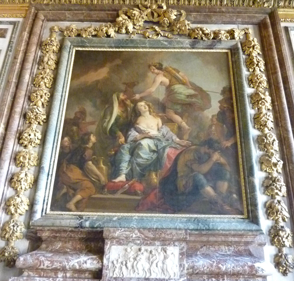 la cheminée du Salon de Diane - tableau représentant le Sacrifice d'Iphigénie (Charles de la Fosse)