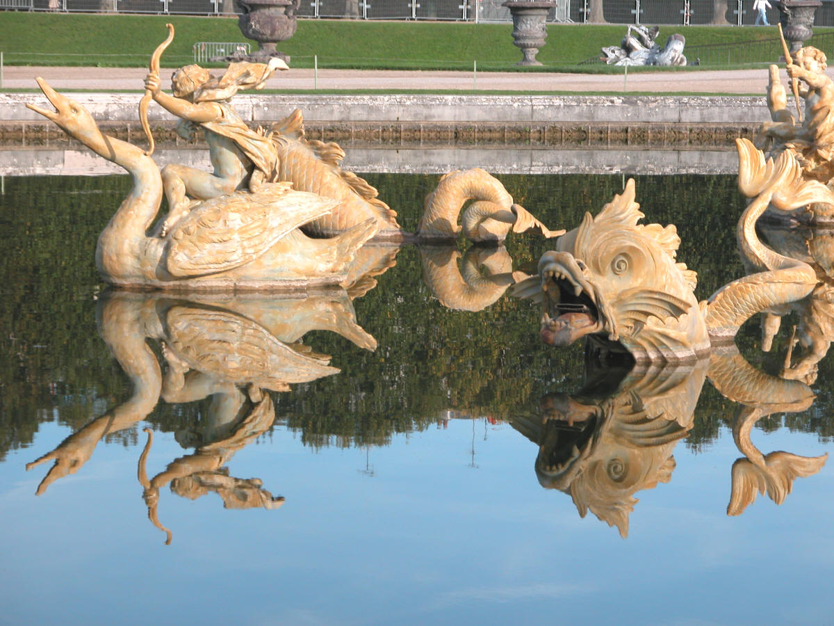 le Bassin du Dragon (Gaspard Marsy) (le Dragon, en plomb doré, aux ailes déployées et entouré de quatre Dauphins et de quatre Amours montés sur des Cygnes) |