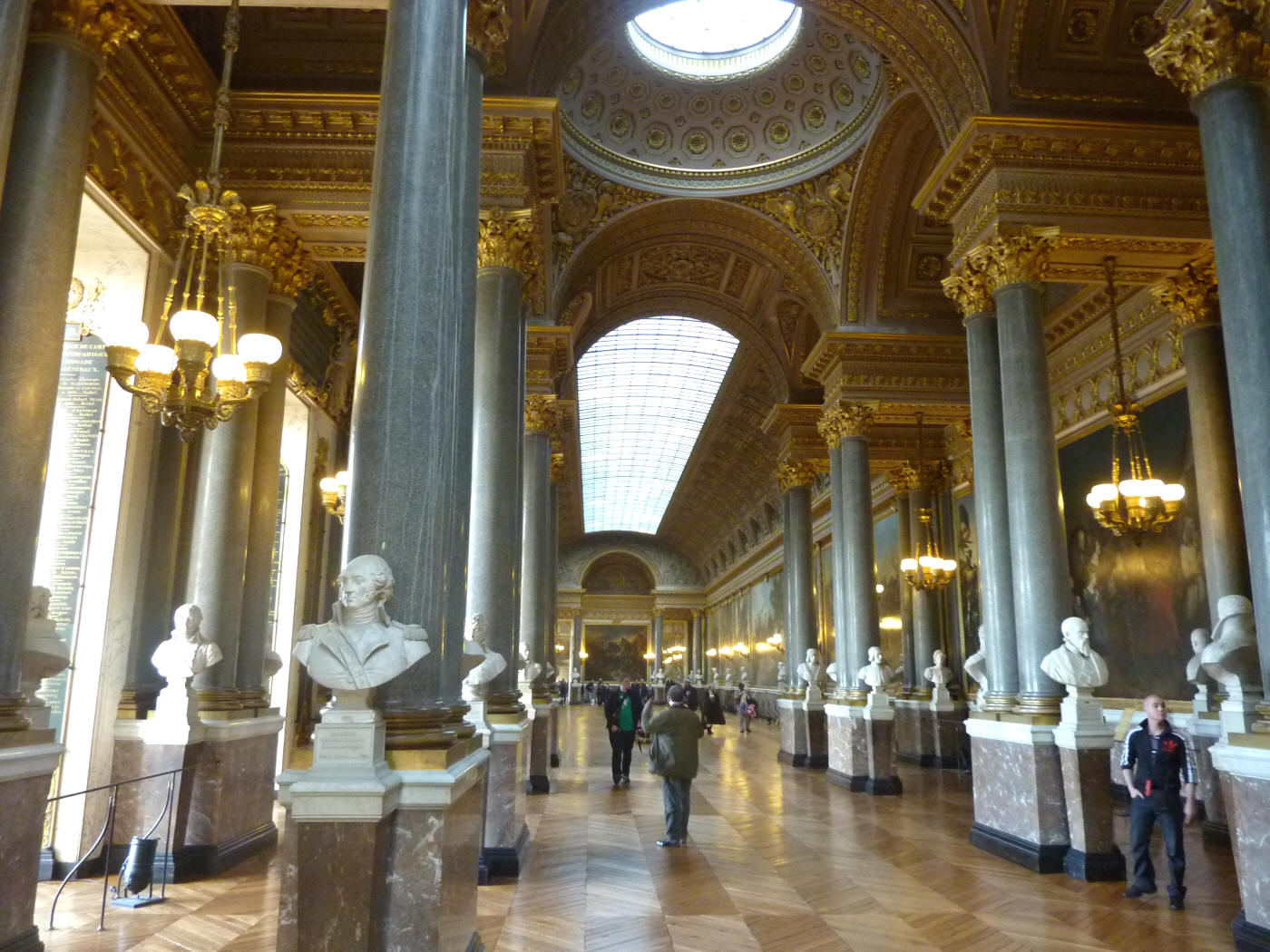 (la galerie fut créée en 1837 par les architectes Fontaine et Nepveu sous le règne de Louis-Philippe - longueur=120m, 35 grands tableaux)