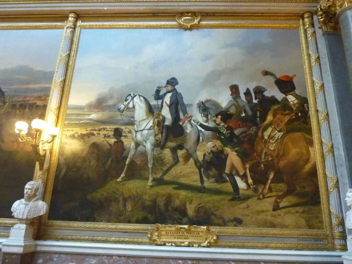 la Bataille de Wagram gagnée par l'Empereur Napoléon 6 juillet 1809 (représentation de Napoléon Ier et du Duc d'Istrie - tableau d'Horace Vernet 1836)