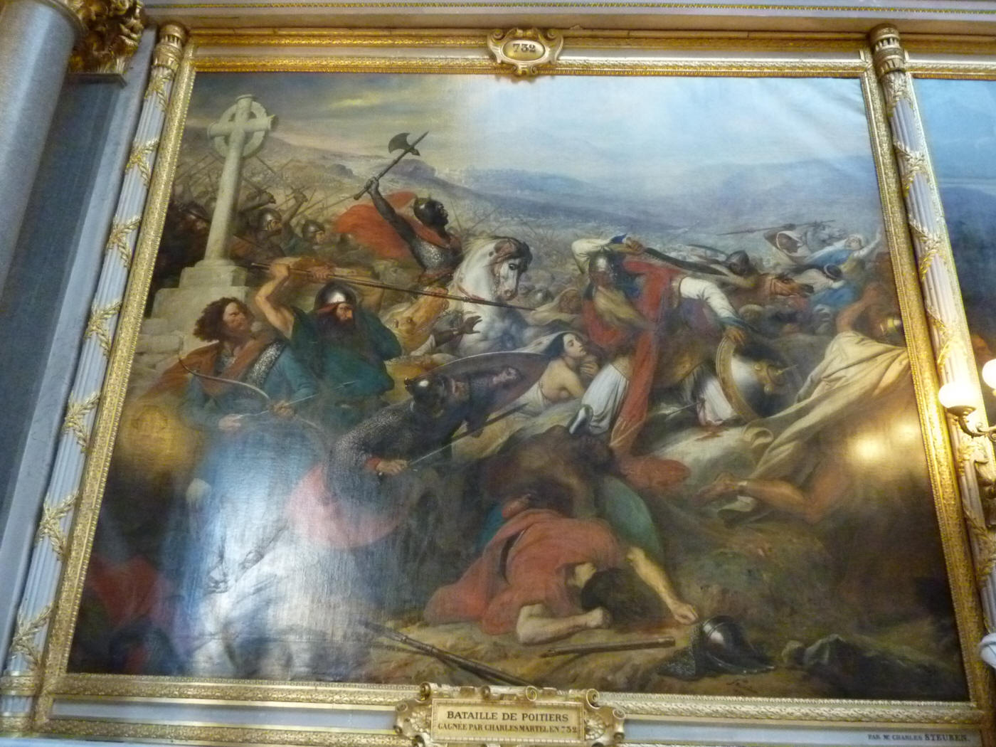 la Bataille de Poitiers gagnée par Charles Martel en 732 (représentation de Charles Martel, Eudes d'Aquitaine et Abd-el-Rahman - tableau de Charles Steuben 1833)