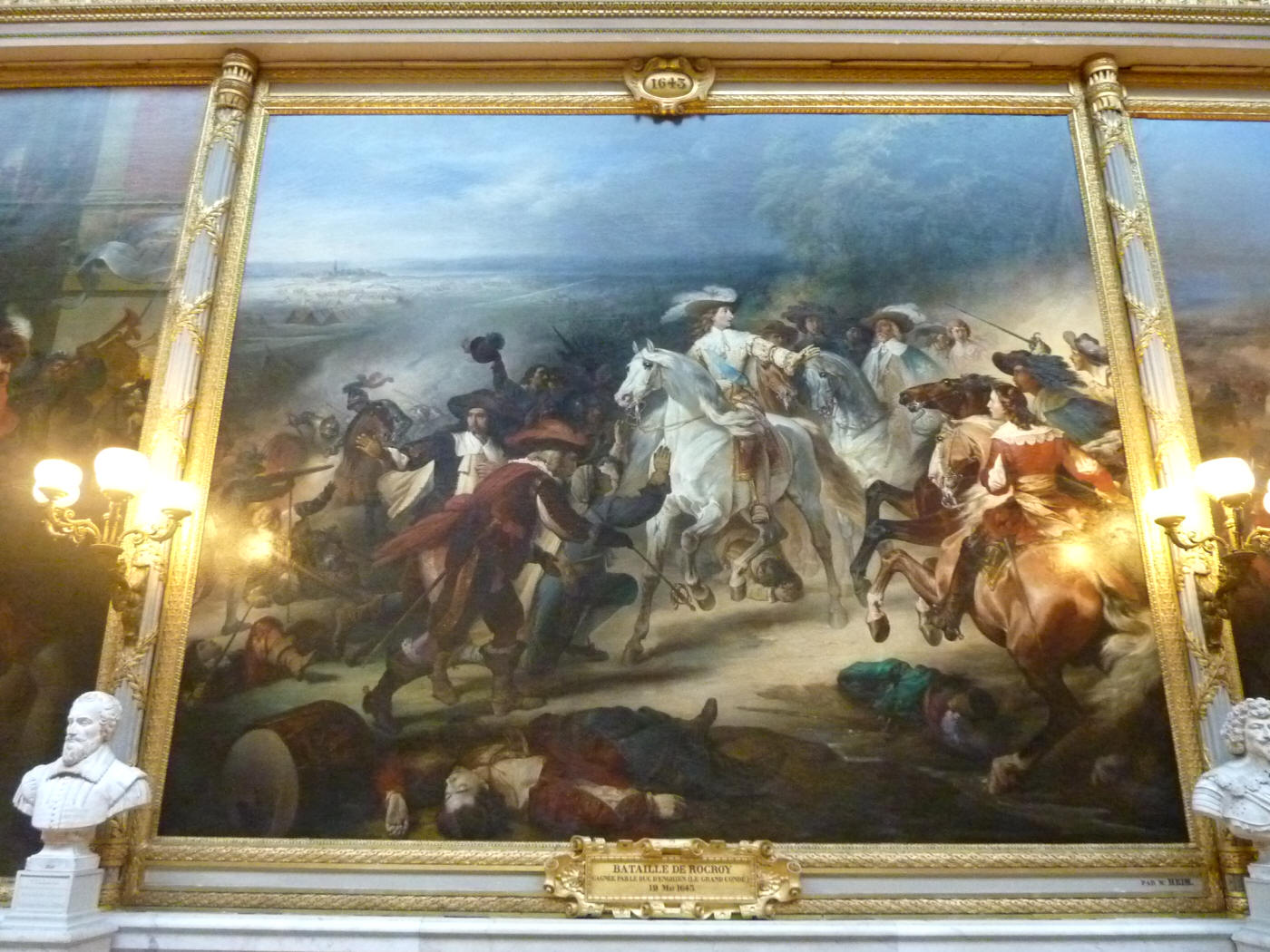 la bataille de Rocroy gagnée par le Duc d'Enghien (le Grand Condé) le 19 mai 1643 (le Duc d'Enghien ordonne l'arrêt du combat - tableau de François Joseph Heim - 1834)