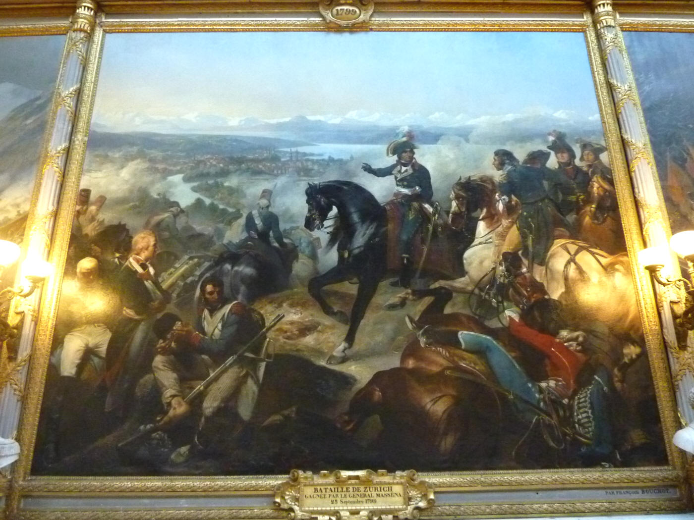la bataille de Zurich gagnée par le Général Masséna le 25 septembre 1799 (représentations d'André Masséna, du Comte Nicolase, de Charles Oudinot et du Comte Honoré Charles Reille - tableau de François Bouchot - 1835)