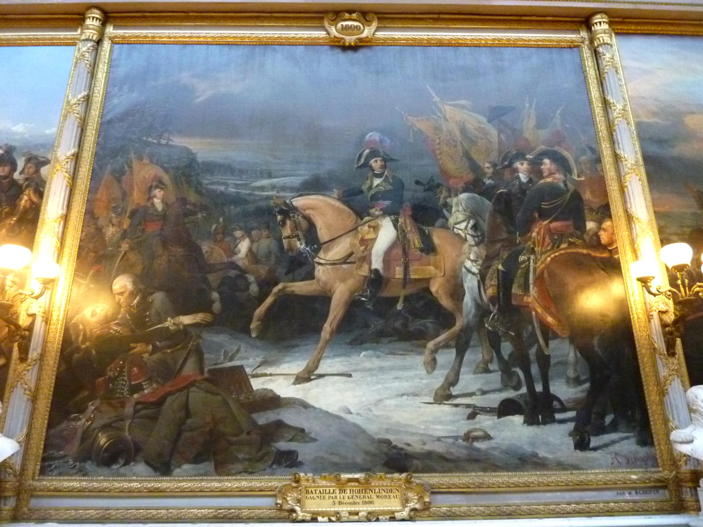 la bataille de Hohenlinden gagnée par le Général Moreau le 3 décembre 1800 (représentations de Jean Victor Moreau, Michel Ney, Emmanuel de Grouchy et Jean de Habsbourg - tableau de Henry-Frédéric Schopin - 1836)