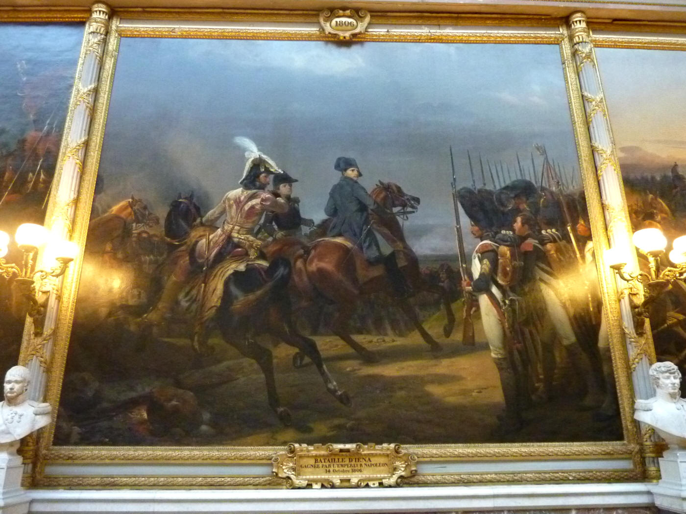 la bataille d'Iéna gagnée par l'Empereur Napoléon le 14 octobre 1806 (représentation de Napoléon Ier , Joachim Murat et Louis Alexandre Berthier- tableau d'Horace Vernet - 1836)