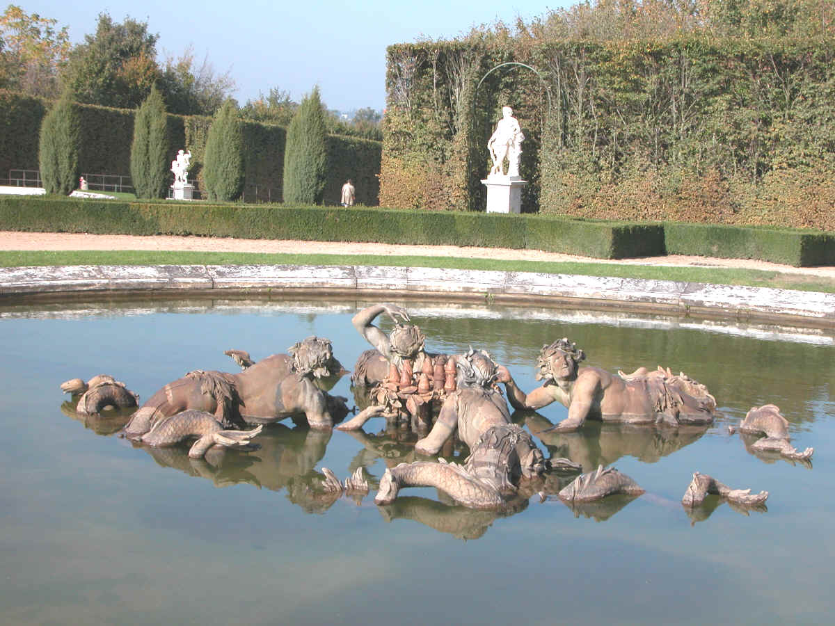 l'un des Bassin des Couronnes (Le Hongre et Tuby) composé de Sirènes et de Tritons couchés en plomb