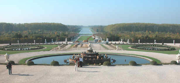 la Grande Perspective du parc central: le bassin de Latone (6), le Tapis Vert (A) , le Bassin du Char d'Apollon (16) et le Grand Canal (B) (cliquez sur les photos - maj : 15/07/2007)