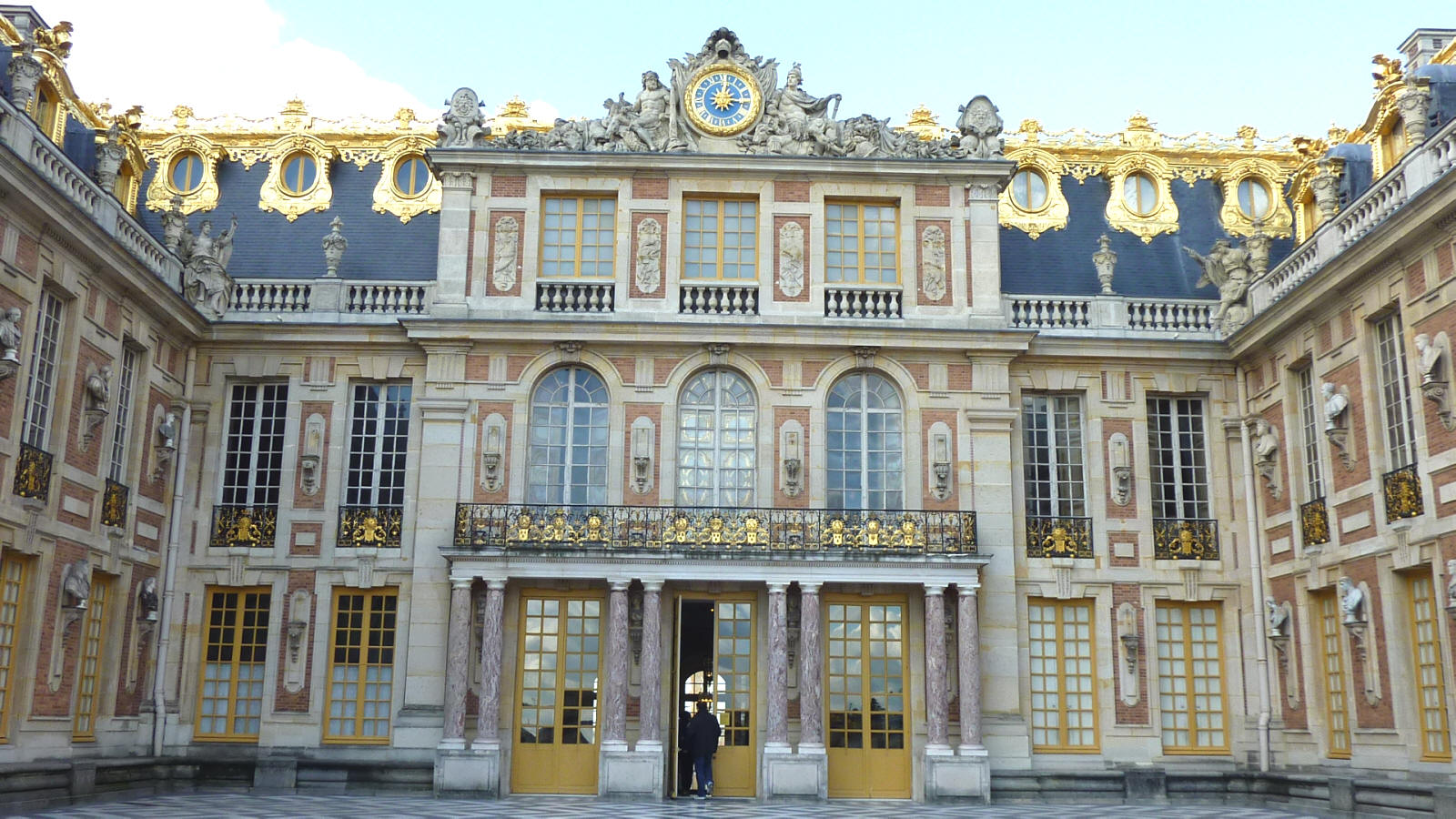 la chambre du Roi au 1er étage vue de la cour de Marbre le 1er juillet 2011 (la chambre est crée pour Louis XIV en 1701 - il y mourut le 1 septembre 1715)