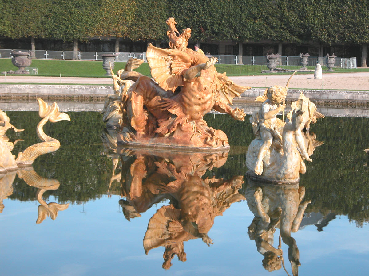 le Bassin du Dragon (Gaspard Marsy) (le Dragon, en plomb doré, aux ailes déployées et entouré de quatre Dauphins et de quatre Amours montés sur des Cygnes) |
