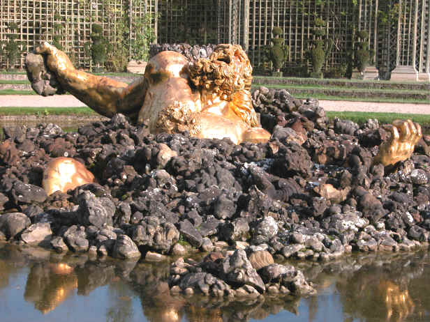 le Bosquet de l'Encelade (en plomb doré - G.Marsy - 1676) (la chute du Titan à demi englouti sous les rochers du Mont Olympe qu'il tenta de monter au mépris de Jupiter) (cliquez sur les photos - maj : 15/07/2007)