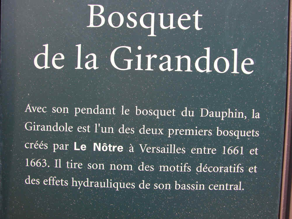 Bosquet de la Girandole ( Le Nôtre 1661-1663)