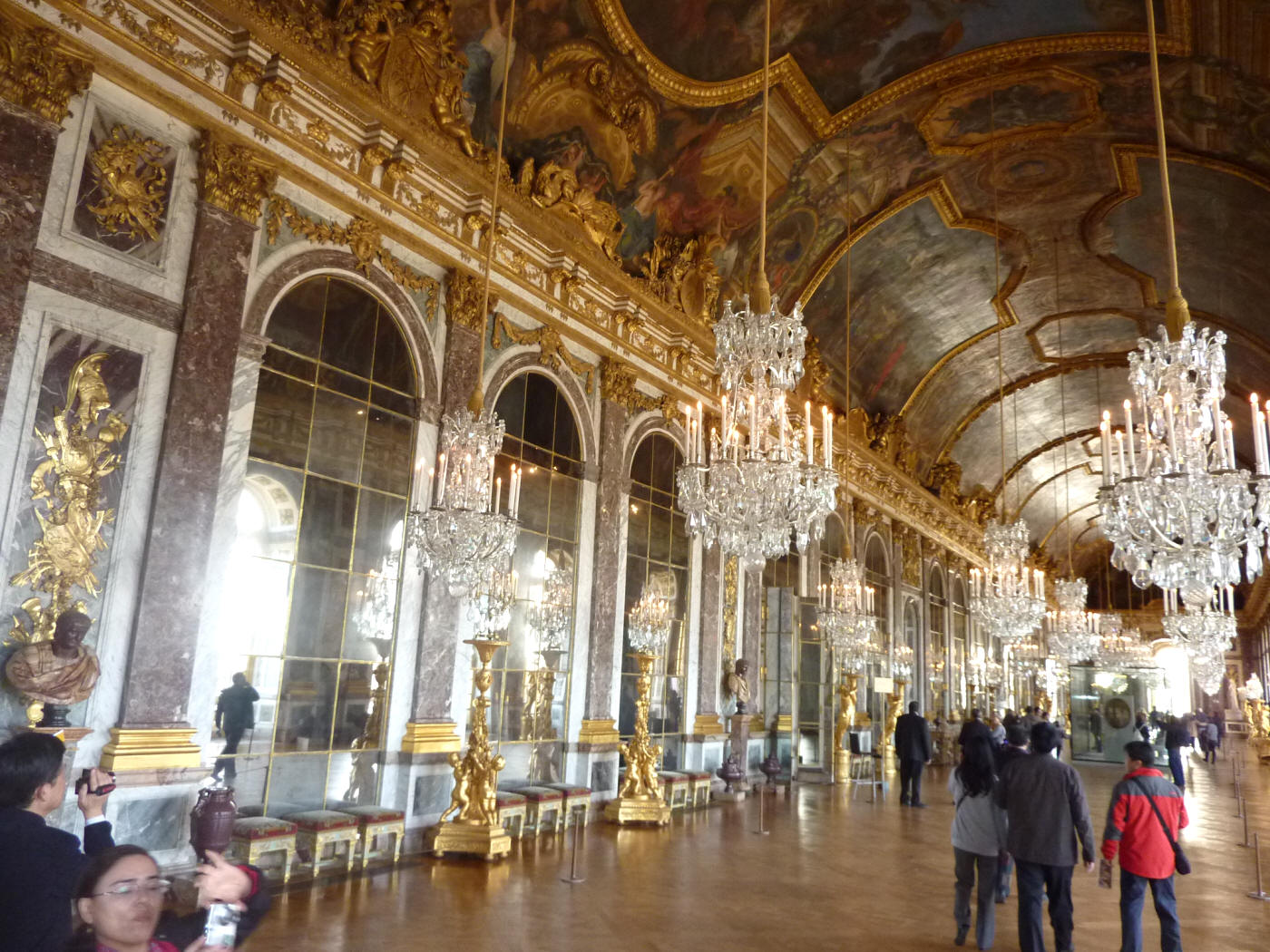 la Galerie des Glaces le 11 novembre 2011 - 73m de long, 10,5m de large, 10,3m de hauteur, 17 fenêtres, 357 miroirs, conçue par J.Hardouin-Mansart 1678-1684 - le plafond près de 1000m2 est de C.Le Brun