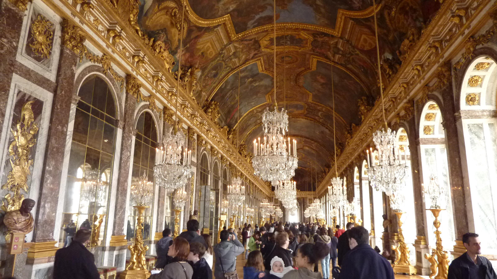 la Galerie des Glaces le 3 mars 2012 - 73m de long, 10,5m de large, 10,3m de hauteur, 17 fenêtres, 357 miroirs, conçue par J.Hardouin-Mansart 1678-1684 - le plafond près de 1000m2 est de C.Le Brun