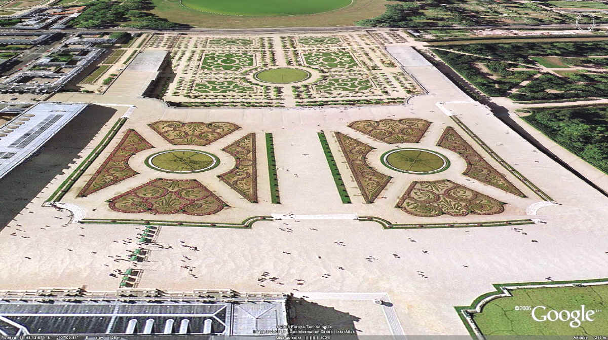 parterre midi le parterre de fleurs du Midi avec ses deux bassins, au loin l'Orangerie (Copyright_Google)
