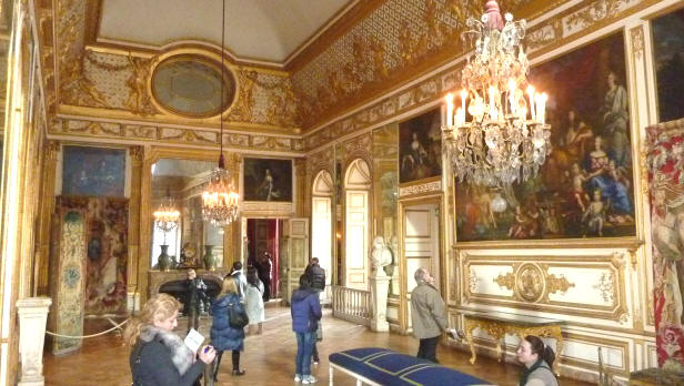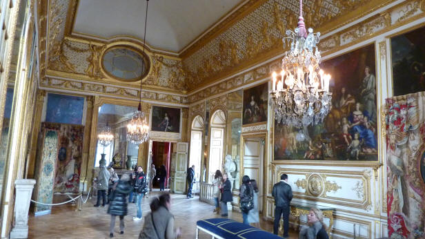 l'antichambre de l'Oeil-de-Boeuf (cliquez sur les photos) (sa dénomination vient des fenêtres ovales qui s'ouvrent dans la frise - salon d'attente des courtisans avant d'être admis dans la chambre du Roi)