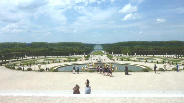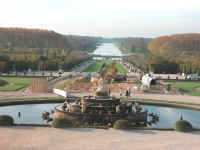 la Grande Perspective du parc central: le bassin de Latone (6), le Tapis Vert (A) , le Bassin du Char d'Apollon (16) et le Grand Canal (B) (cliquez sur les photos - maj : 15/07/2007)