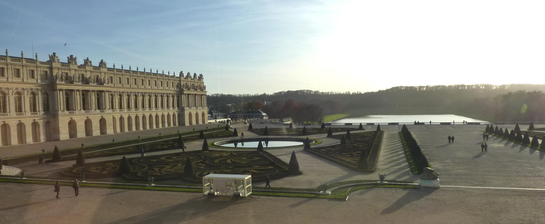 vue sur l'aile Sud du Château, le parterre du Midi et la pièce d'eau des Suisses à partir du salon de la Paix le 30 novembre 2011