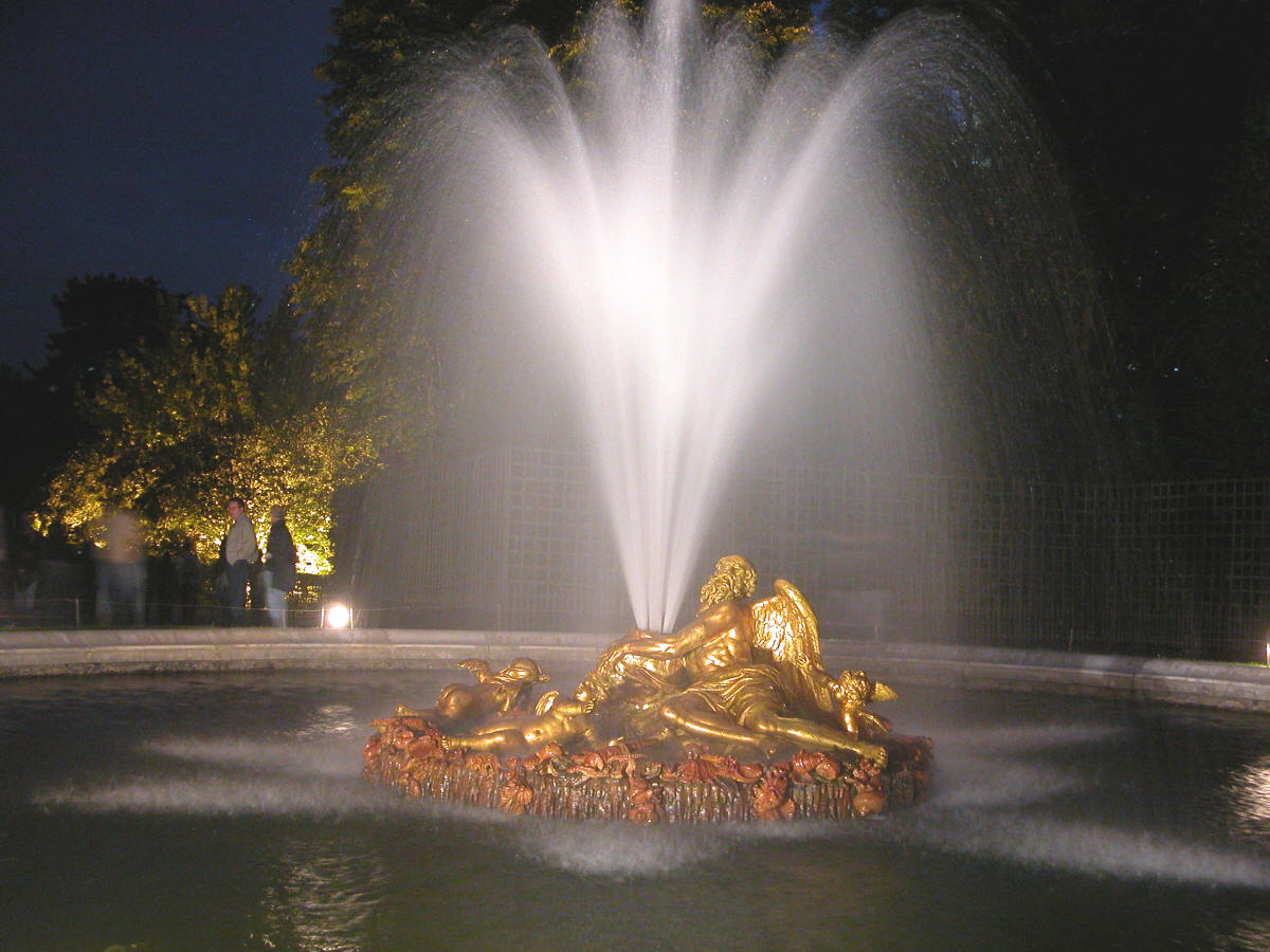 page précédente            le Bassin de Saturne ou de l'Hiver (Girardon 1675-1677) lors des Grandes Eaux Nocturnes de Versailles